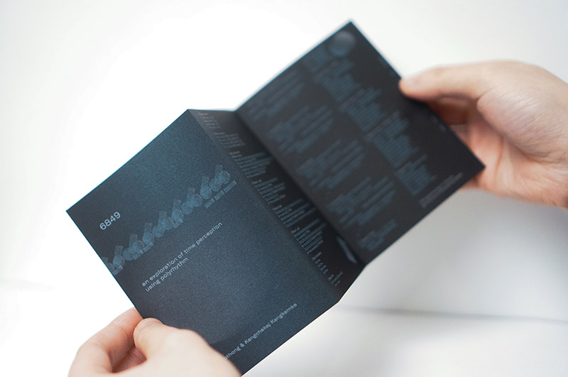 This Zine recreates, in visual form, the original composition '6849’ through a different medium, including data visualization, coding, and musical score. The result investigate the perception of a variety of independence pulses within the same duration.